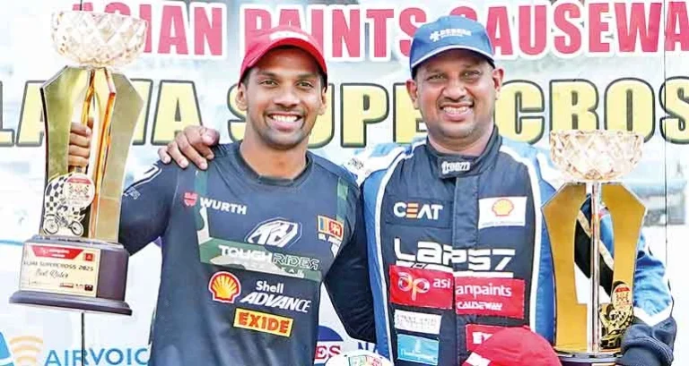 Ashan Silva and Jacques Gunawardena delivered outstanding performances at the Gajaba Supercross 2025, thrilling fans with their speed, skill, and determination. Both riders dominated their respective categories, showing exceptional control and precision on the challenging track.